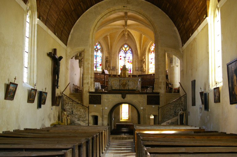 Classée en 1912, elle est l’une des très rares églises qui se singularise par son chœur à deux niveaux avec un escalier en fer à cheval de 18 marches, à rampe en fer forgé.