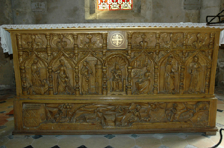 Le devant de l’autel en bois doré est également classé, ainsi que les statues du Pape (XVIIème, XVIIIème), de Saint Jean-Baptiste (XVIIème, XVIIIème), de Saint-Pierre (XVIIIème), de Sainte Barbe (XIIème) et les vitraux du chœur (XVIème) véritables joyaux.