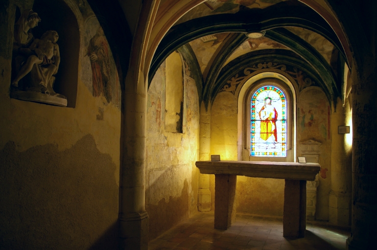 Dans la crypte semi-enterrée, on peut admirer ce qui est sans doute l’exemple le plus spectaculaire de la peinture murale de l’époque de la Renaissance en vendômois.